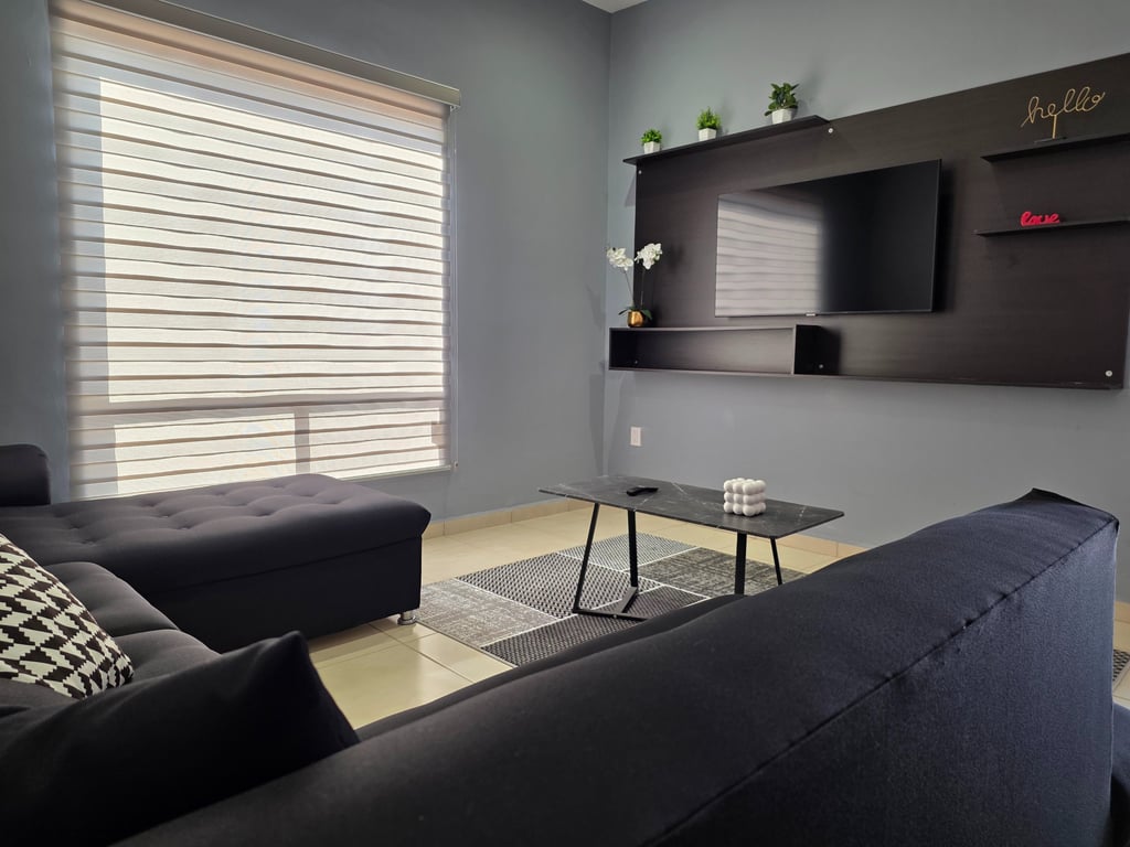 Sala y Comedor con: Sofé (cama), pantalla, mesa desayunadora con 4 sillas.