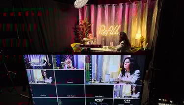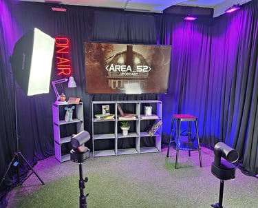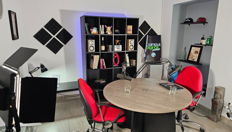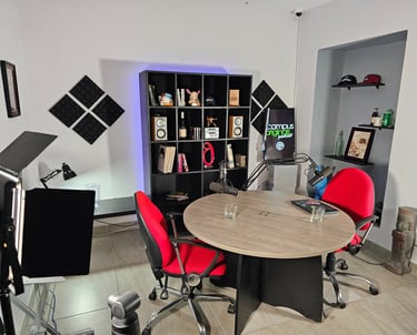 Tu Voz, Amplificada con Calidad Profesional. Sumérgete en un ambiente diseñado para el arte del podcasting. Nuestro Estudio 1 ofrece iluminación controlada, cámaras de alta definición, micrófonos de calidad broadcast y una estética neutral que se adapta a cualquier temática. Aquí grabamos nuestros demos y damos vida a nuestro propio contenido, el espacio perfecto para que tú también explores el poder del audio y el video.