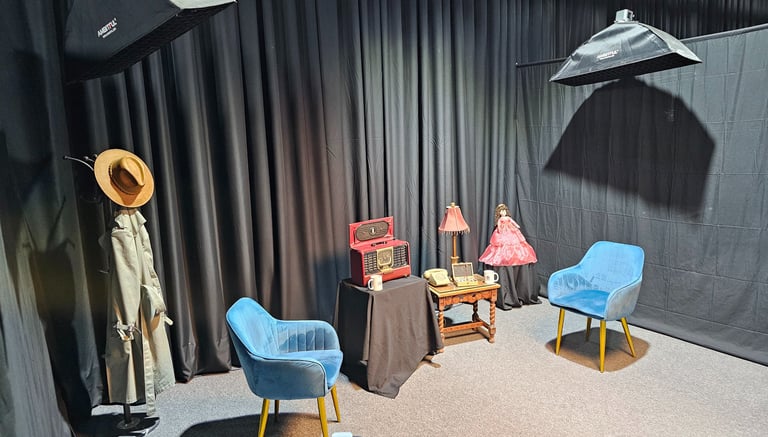 Tu Espacio Creativo, Adaptado a tus Necesidades. En la segunda planta, descubre nuestra ala de estudios flexibles. Dos estudios de tamaño mediano, ideales para conversaciones y producciones de hasta dos personas, y un estudio dedicado a la creación de contenido vertical dinámico para plataformas como TikTok e Instagram Reels. Sea cual sea tu formato, tenemos el espacio perfecto para ti.