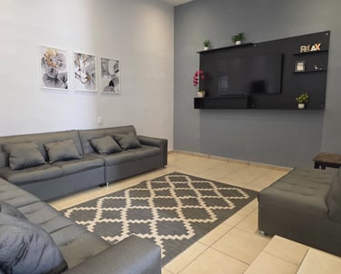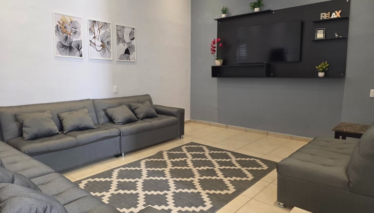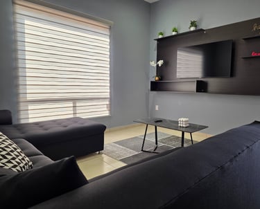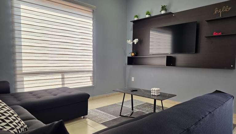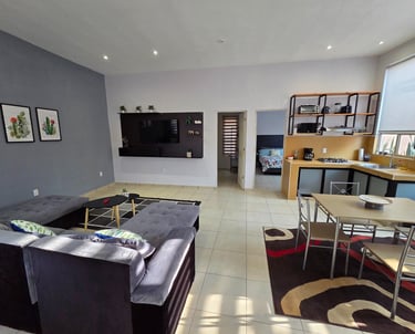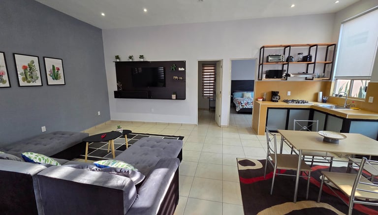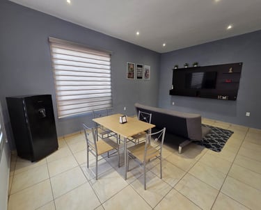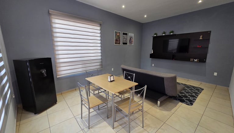 Sala y Comedor con: Sofé (cama), pantalla, mesa desayunadora con 4 sillas.