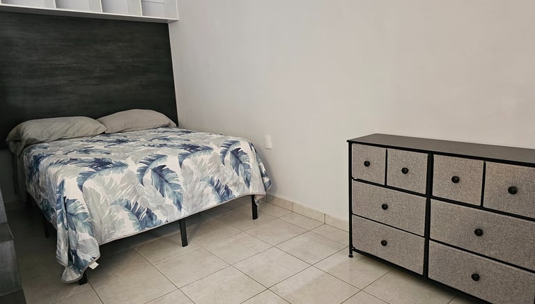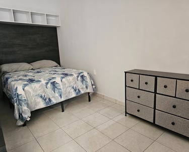 1 Habitación con: 1 Cama Matrimonial, pantalla, control remoto.